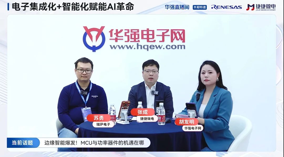 ? ? 捷捷微電 MOSFET市場(chǎng)部部長(zhǎng)?張成瑞薩電子嵌入式處理器事業(yè)部高級(jí)專家?蘇勇一同做客華強(qiáng)電子網(wǎng),圍繞“電子集成化+智能化賦能AI革命”、“AI爆發(fā),功率器件如何突破現(xiàn)有技術(shù)?”等主題進(jìn)行了直播講解,在線觀眾熱情十足,討論激烈。