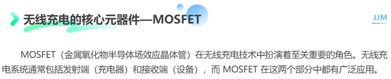 MOSFET(金屬氧化物半導(dǎo)體場(chǎng)效應(yīng)晶體管)在無線充電技術(shù)中扮演著至關(guān)重要的角色。無線充電系統(tǒng)通常包括發(fā)射端(充電器)和接收端(設(shè)備),而 MOSFET 在這兩個(gè)部分中都有廣泛應(yīng)用。